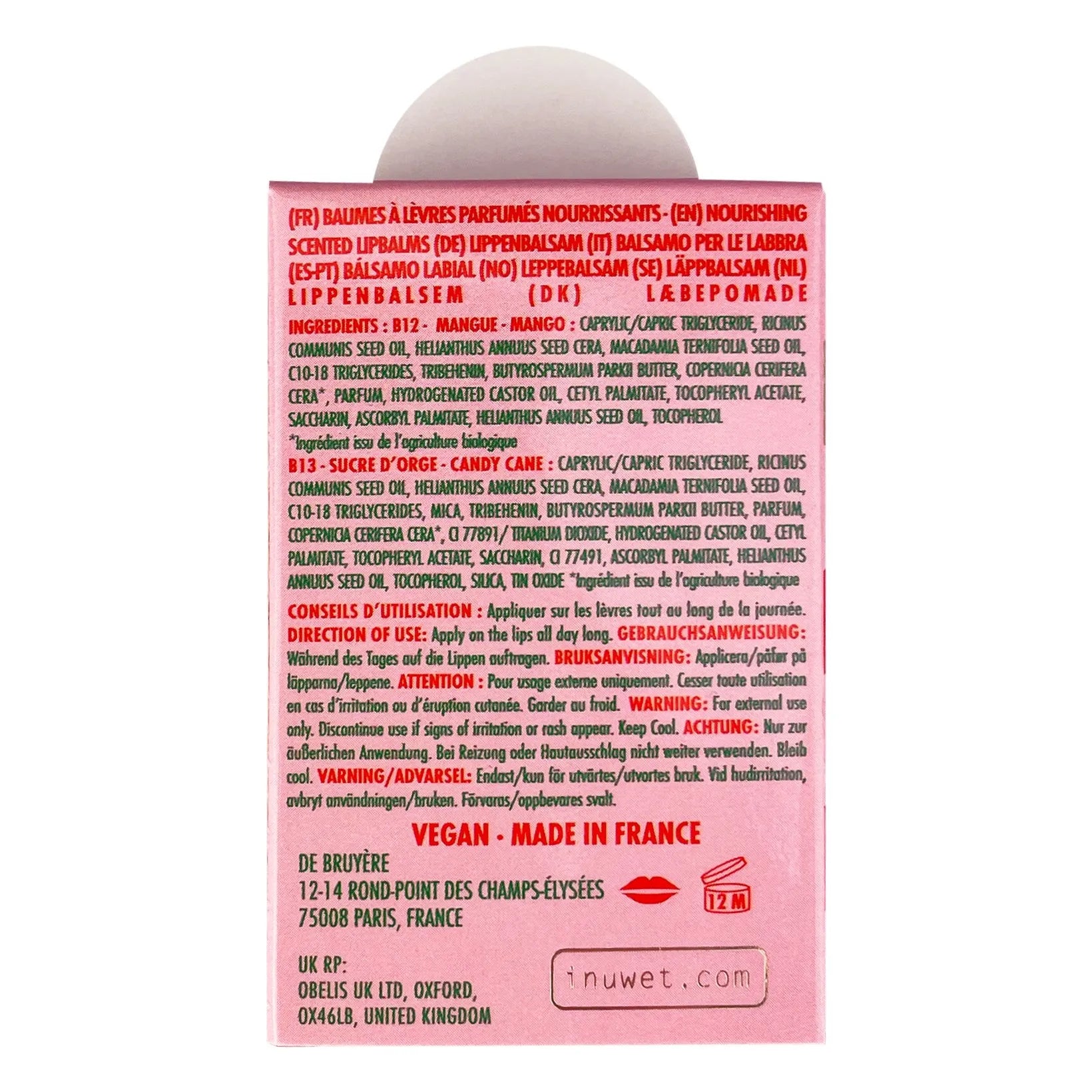 Inhaltsstoffe: Mango: Caprylic/Capric Triglyceride, Ricinus Communis Seed Oil, Helianthus Annuus Seed Cera, Macadamia Ternifolia Seed Oil, C10-18 Triglyceride, Tribehenin, Butyrospermum Parkii Butter, Copernicia Cerifera Cera*, Parfum, Hydrogenated Castor Oil, Cetyl Palmitate, Tocopheryl Acetate, Saccharin, Ascorbyl Palmitate, Helianthus Annuus Seed Oil, Tocopherol *Inhaltsstoff aus ökologischem Landbau