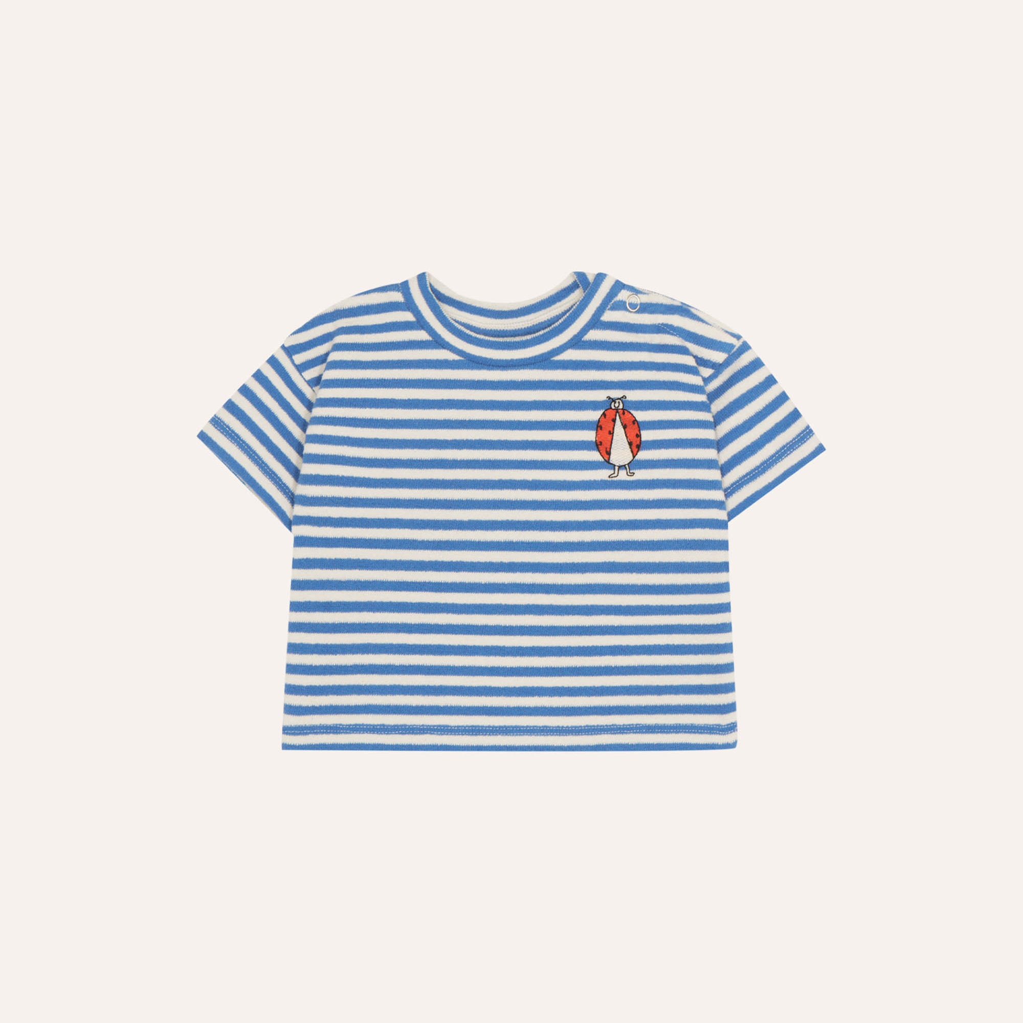 Dieses T-Shirt im Oversized-Schnitt ist aus hochwertigem, blau-weiß gestreiftem Stoff gefertigt. Mit kurzen Ärmeln und Rundhalsausschnitt ist es das perfekte Kleidungsstück für den Sommer.
