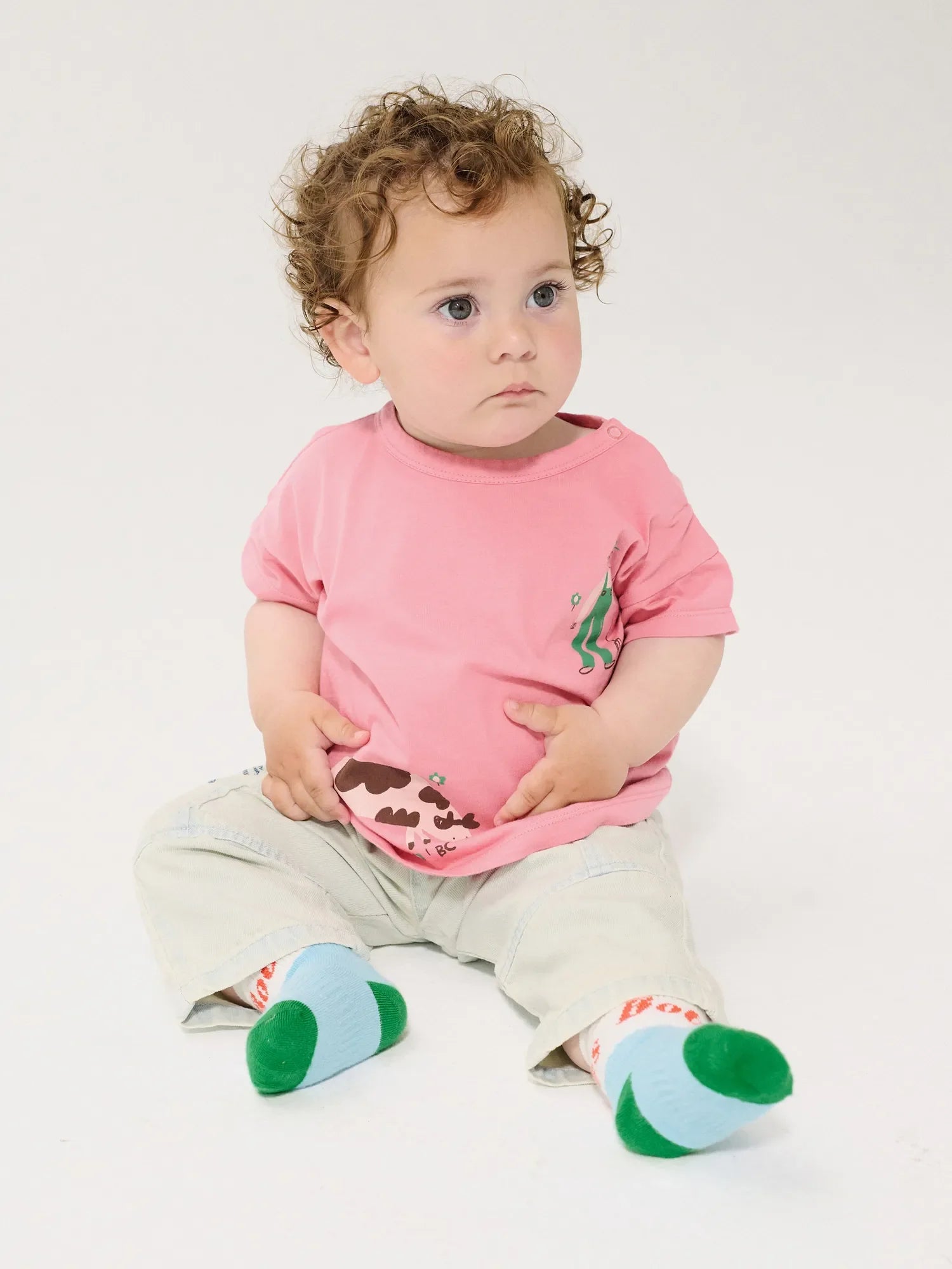 Rosa T-Shirt mit überschnittenen Schultern, Druckknopfverschluss an der Schulter, lockerer Passform und Rundhalsausschnitt. Hergestellt in Spanien.