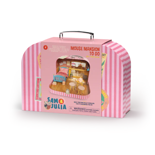 Dein Kind liebt Ballett und hat ein Herz für Mäuse? Dann ist dieses Köfferchen genau das Richtige! Es enthält alles, was man braucht, um ein kleines Ballettzimmer zu bauen, in dem Ella ihre Pirouetten üben kann. Die Möbel lassen sich ganz einfach zusammenbauen – auch für Anfänger. Mit den Mini-Ballettaccessoires wird das Zimmer richtig gemütlich, und Ella kann an ihrer eigenen Ballettstange vor dem Spiegel tanzen. So hat sie immer einen Platz zum Schlafen und Tanzen – sogar im Urlaub oder auf Besuch!