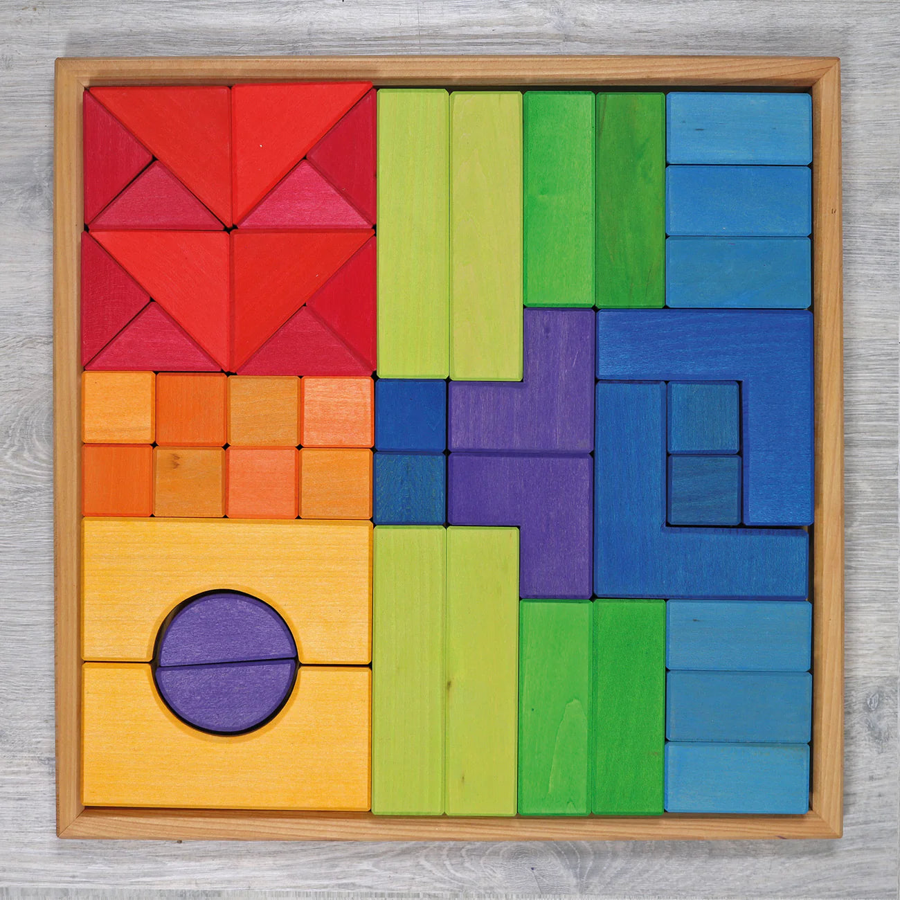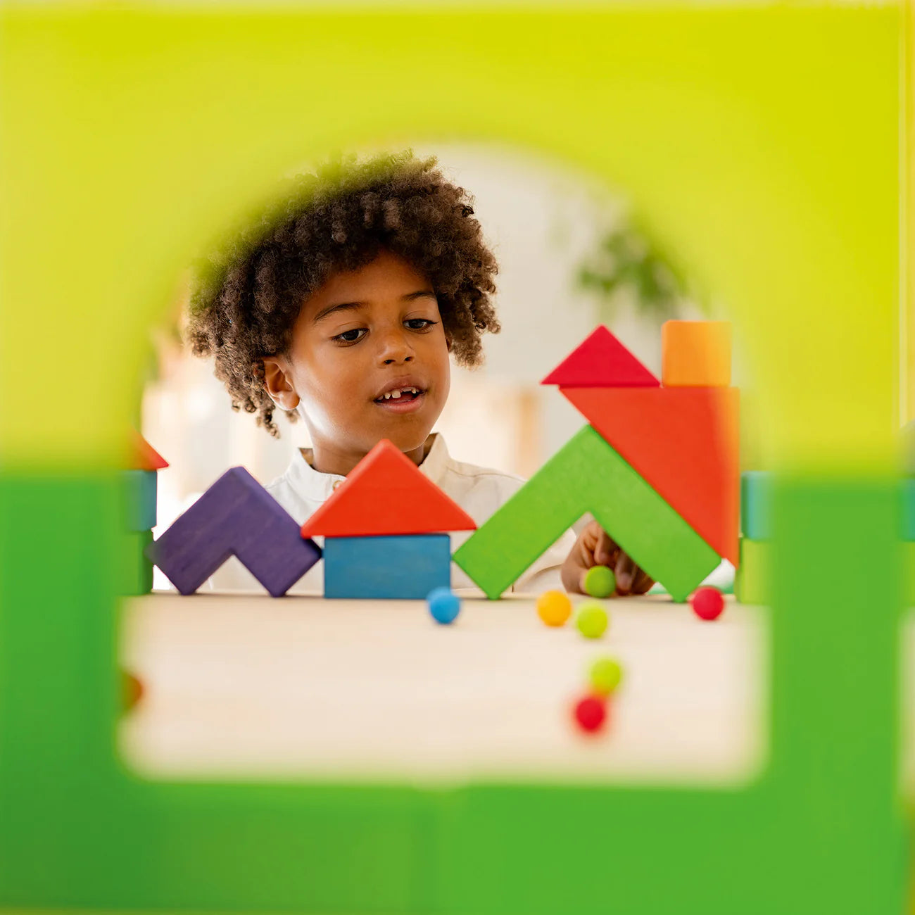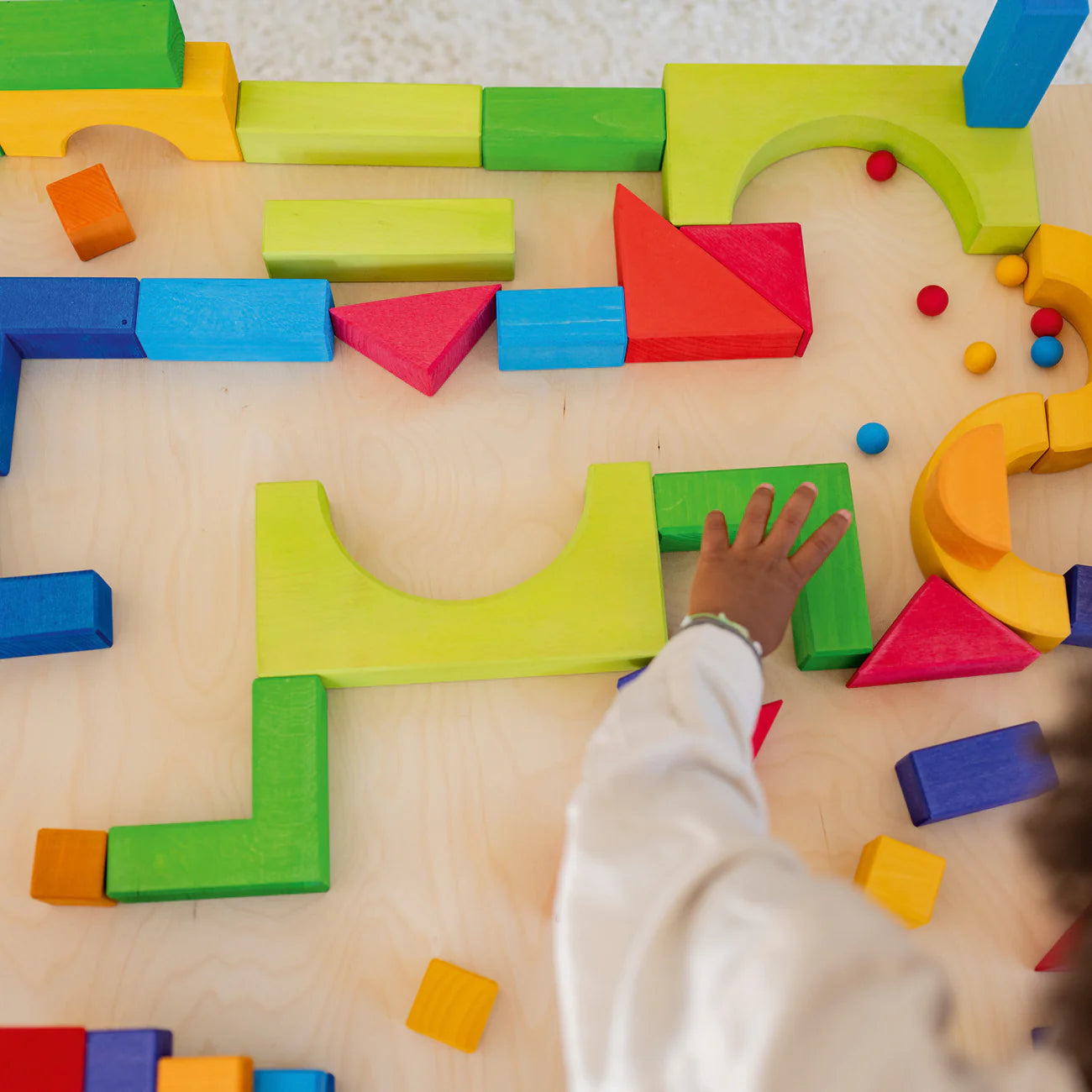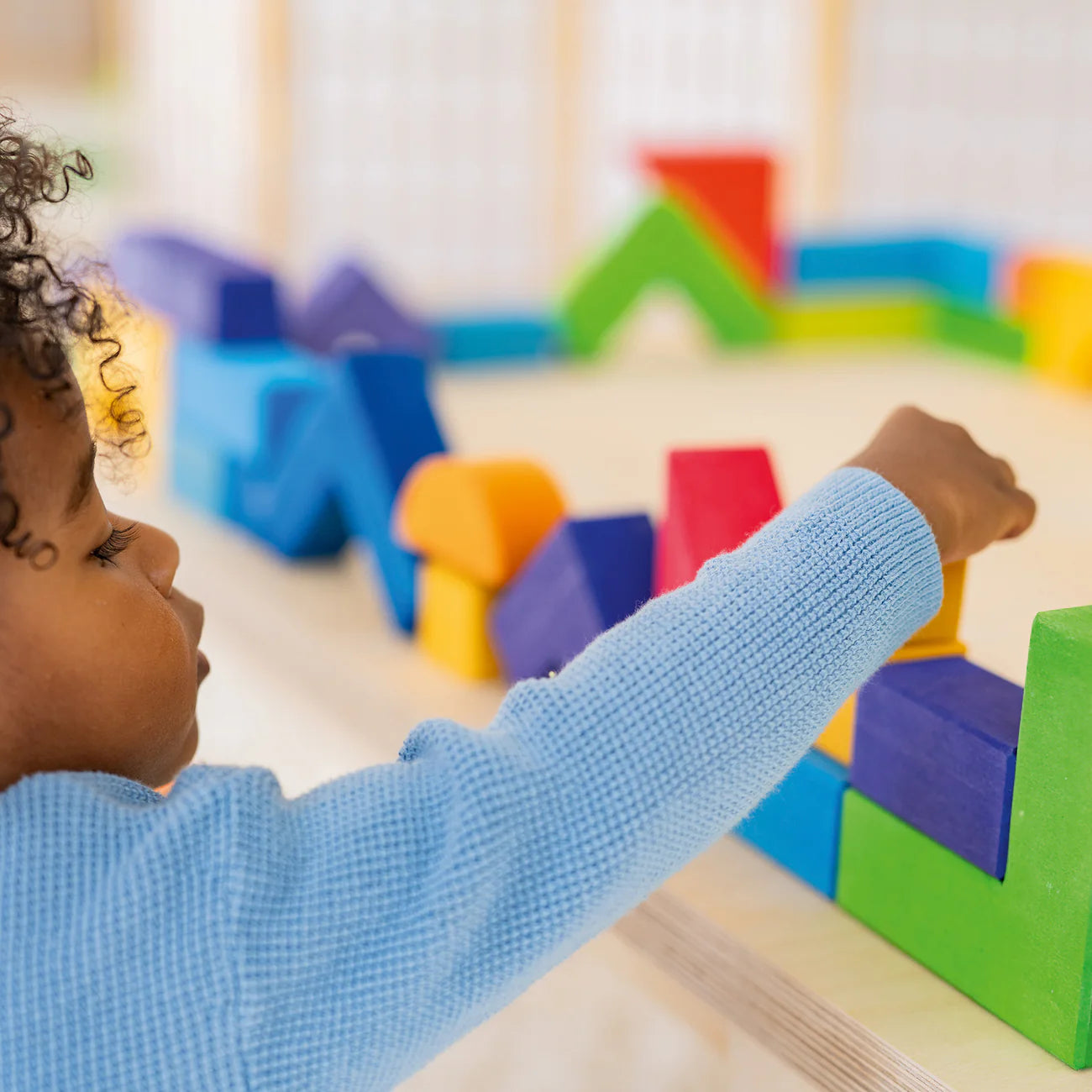 Die Formen und Farben von diesem Baukasten sind inspiriert von Friedrich W. A. Fröbels Konzept der Frühkindlichen Bildung und seiner Pädagogik (1782-1852). Der Grundbaukasten ist besonders ideal für kleine Kinder mit weniger Teilen und dafür großen Bauklötzen und einfachen Formen. Die vielen Teile lassen der Fantasie der Kinder freien Lauf und bieten viele Möglichkeiten zum Bauen von Häusern, Mauern, Zäunen und Ställen sowie Türmen und Burgen. Beim Bauen und Spielen werden ganz nebenbei die Feinmotorik und das räumliche Denken der Kinder geschult.