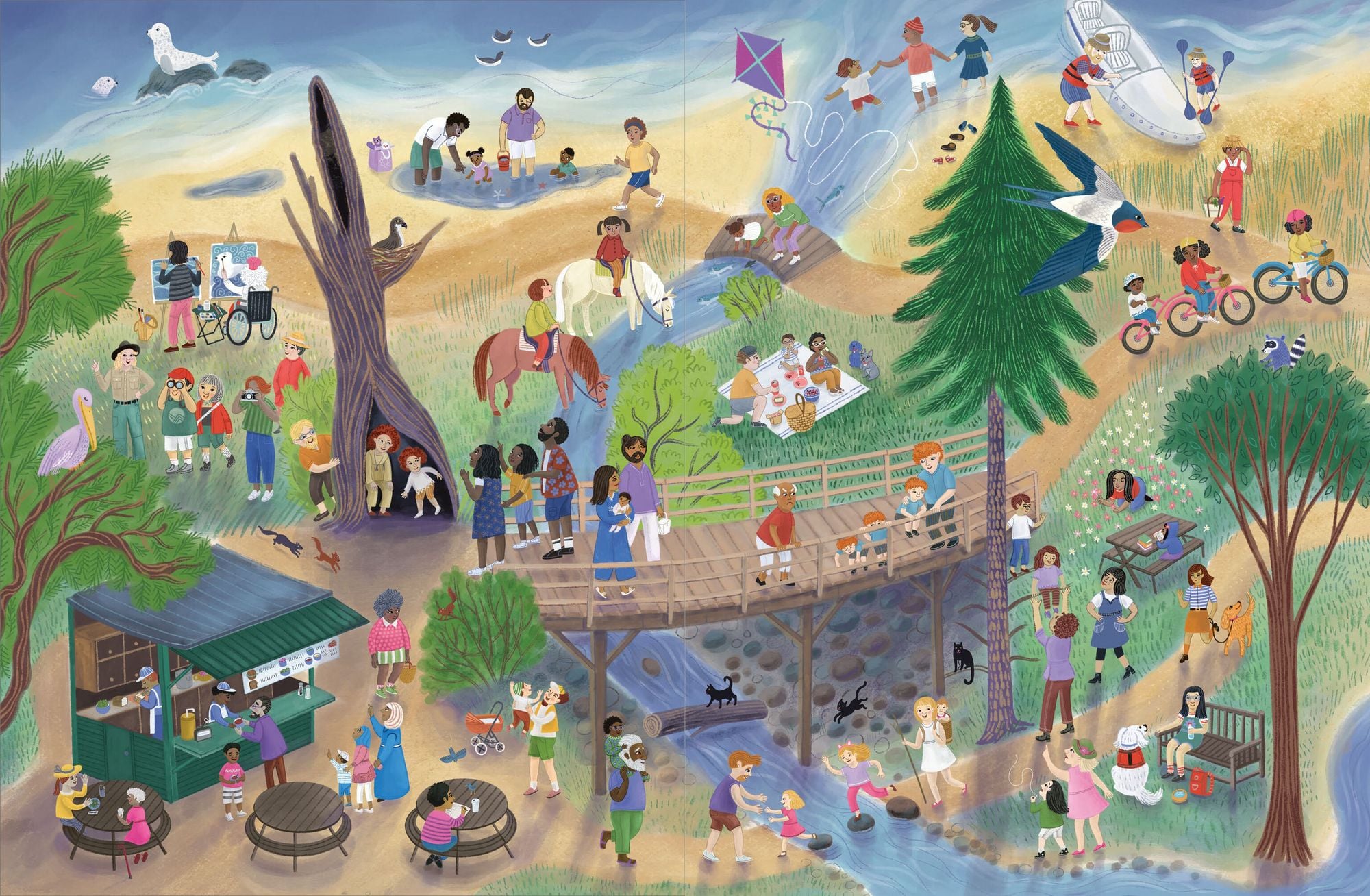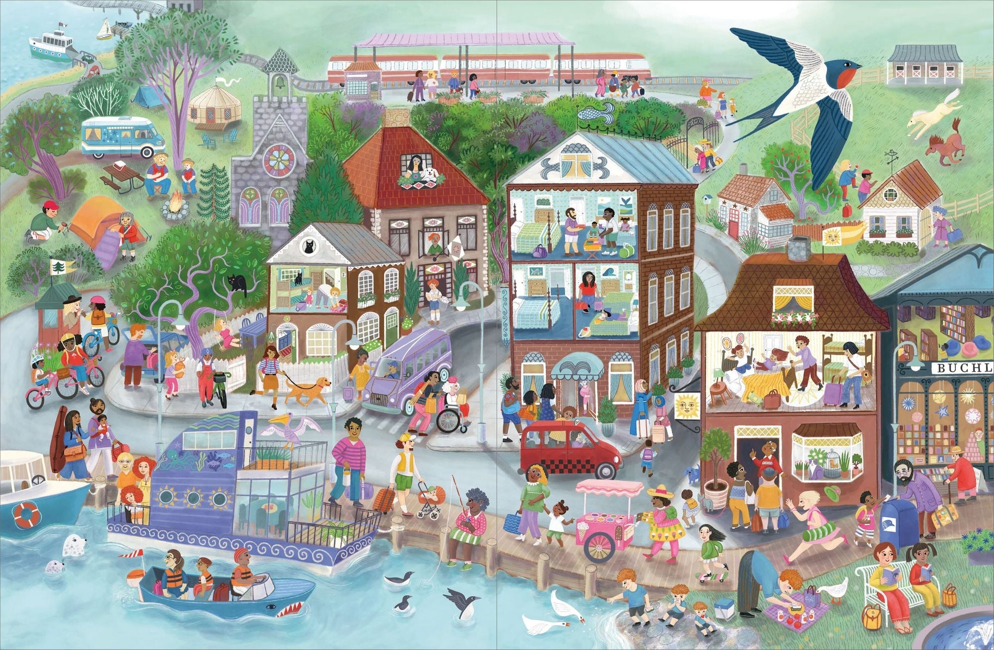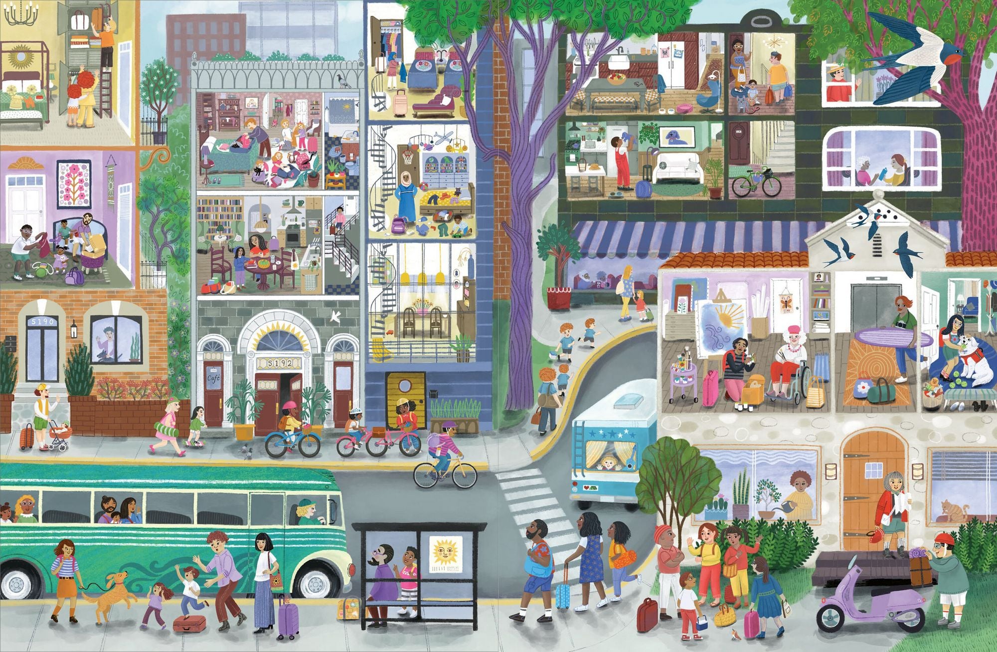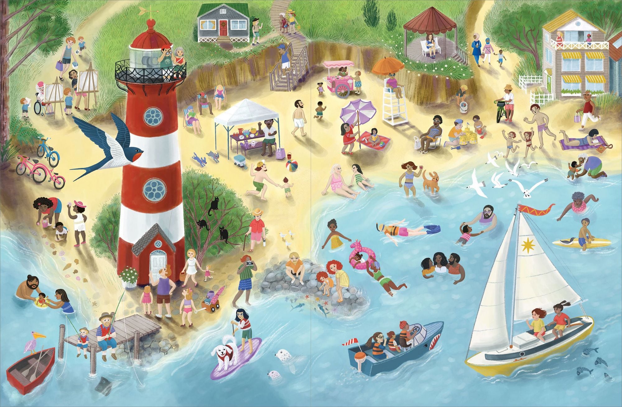 Auf den detailreichen Illustrationen von Cynthia Cliff gibt es für kleine Kinder nicht nur viele tolle diverse Charaktere und Urlaubsaktivitäten zu entdecken, sondern sie lernen auch, dass Familie für alle etwas anderes bedeutet.