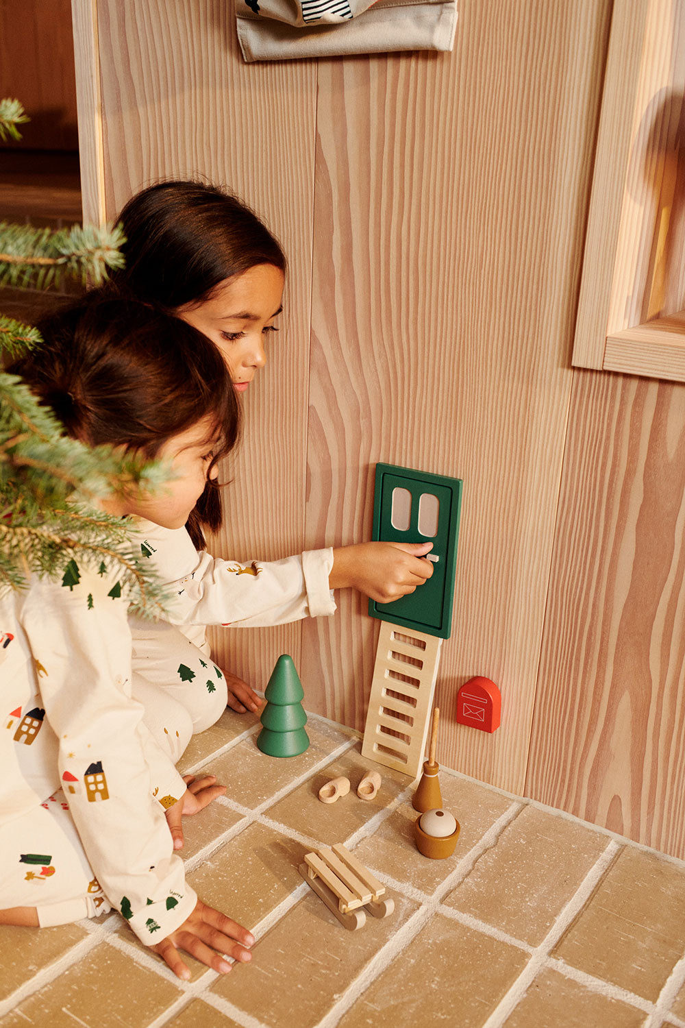 - mit 8 Teilen: Tür, Treppe, Briefkasten, Tanne, Besen, Schlitten und Schuhe