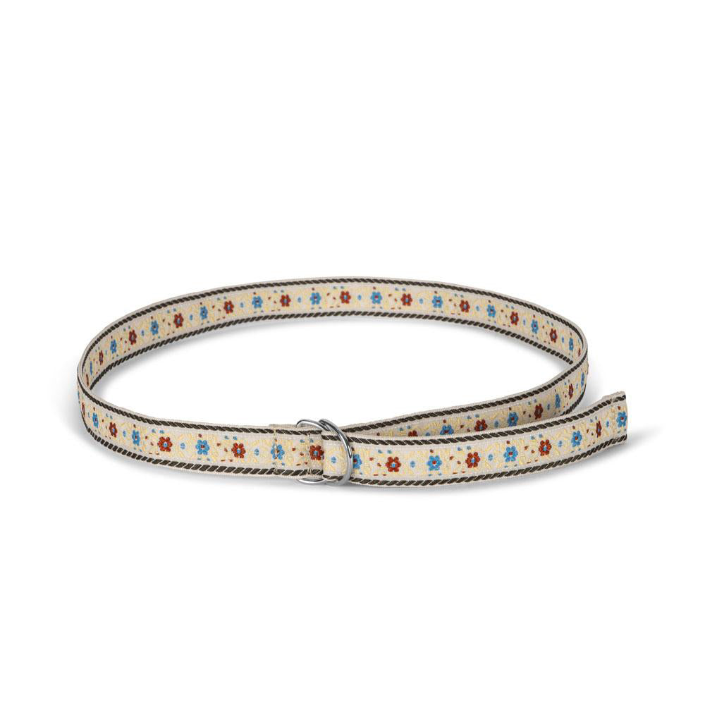 Mit Blümchen verzierter Gürtel aus 100 % Polyester mit einer Schnalle aus 100 % Metall.