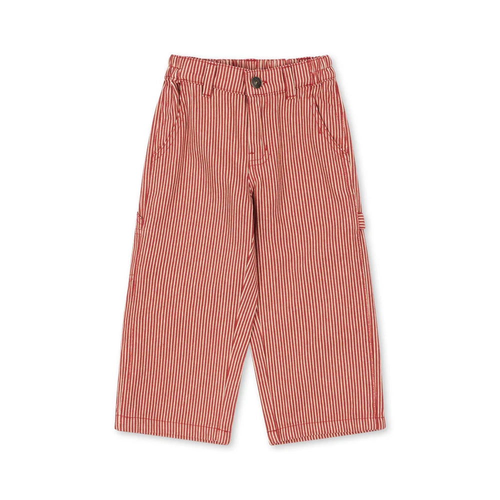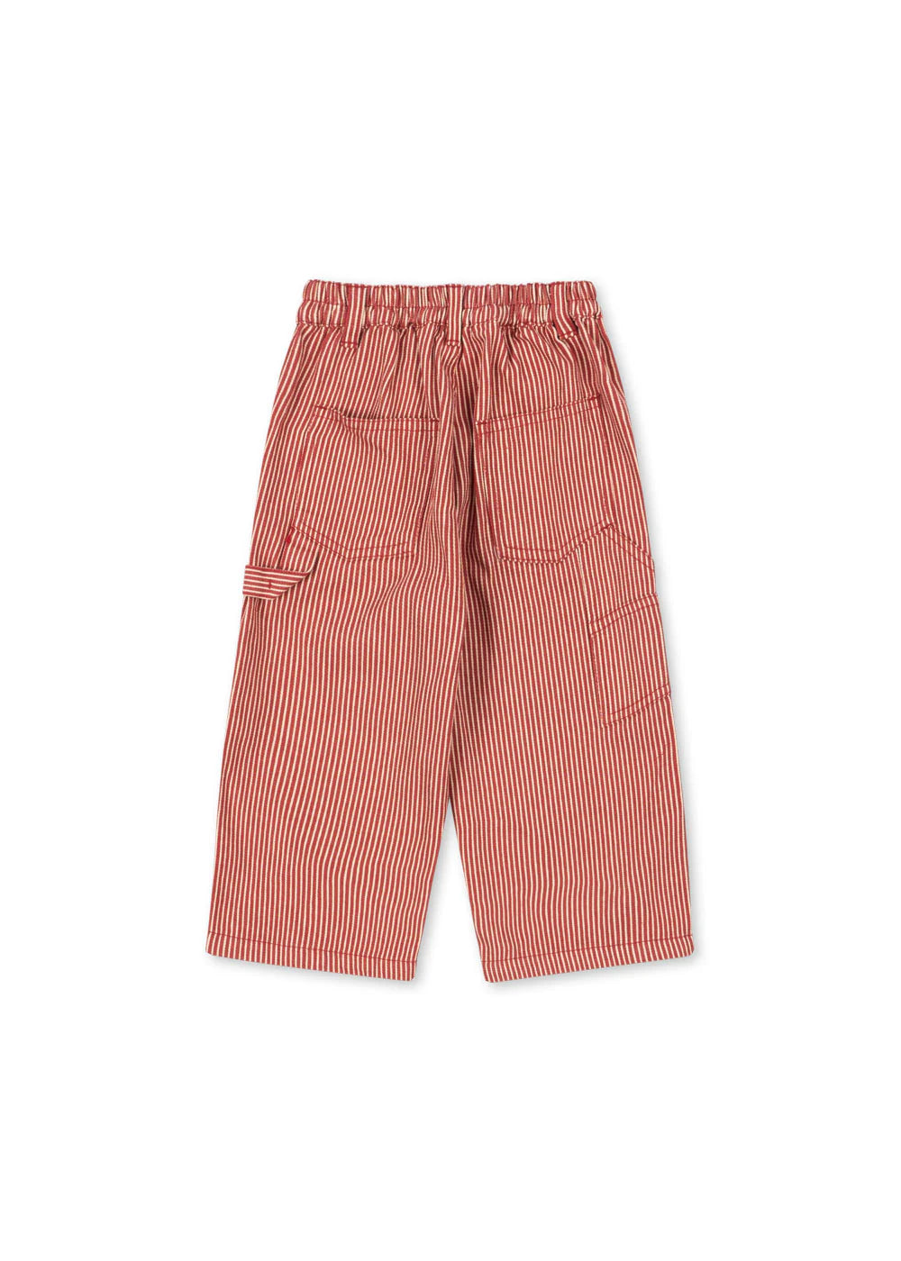 Die Luc-Hose ist ein, von Arbeitskleidung inspiriertes, Kleidungsstück mit vielen niedlichen Details. Sie verfügt über einen teilweise elastischen Bund, Vorder- und Gesäßtaschen sowie weite Hosenbeine für eine bequeme Passform.