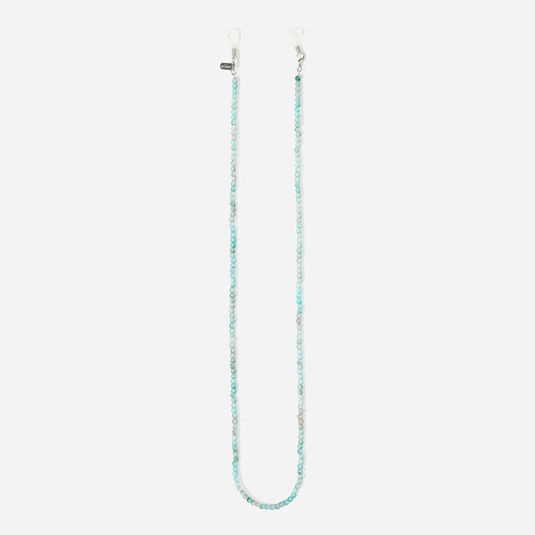 Eine türkisfarbene Perlenkordel, wie ein sommerliches Schmuckstück für den Alltag. Leicht, praktisch und farbenfroh verleiht sie deiner Brille einen stilvollen Akzent.