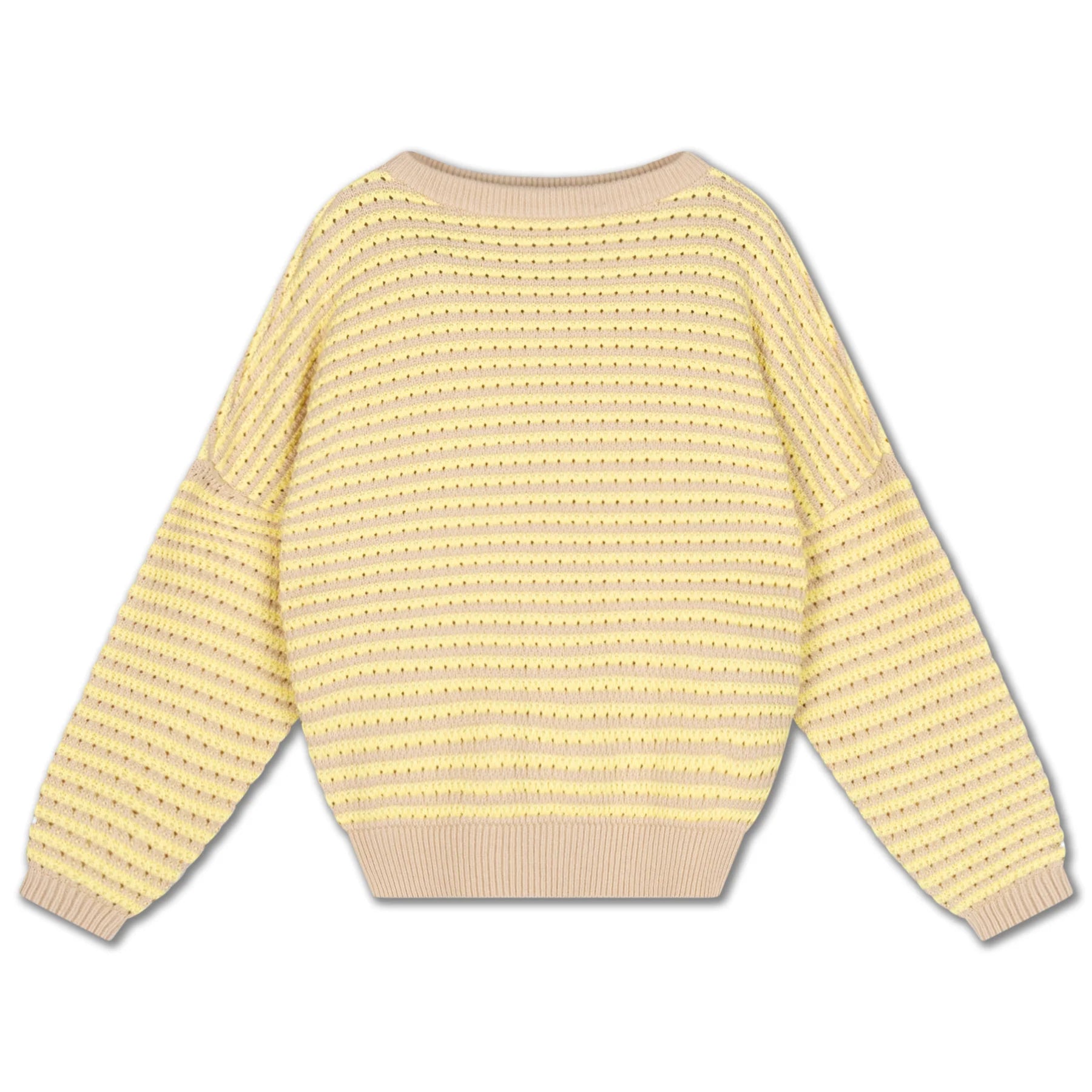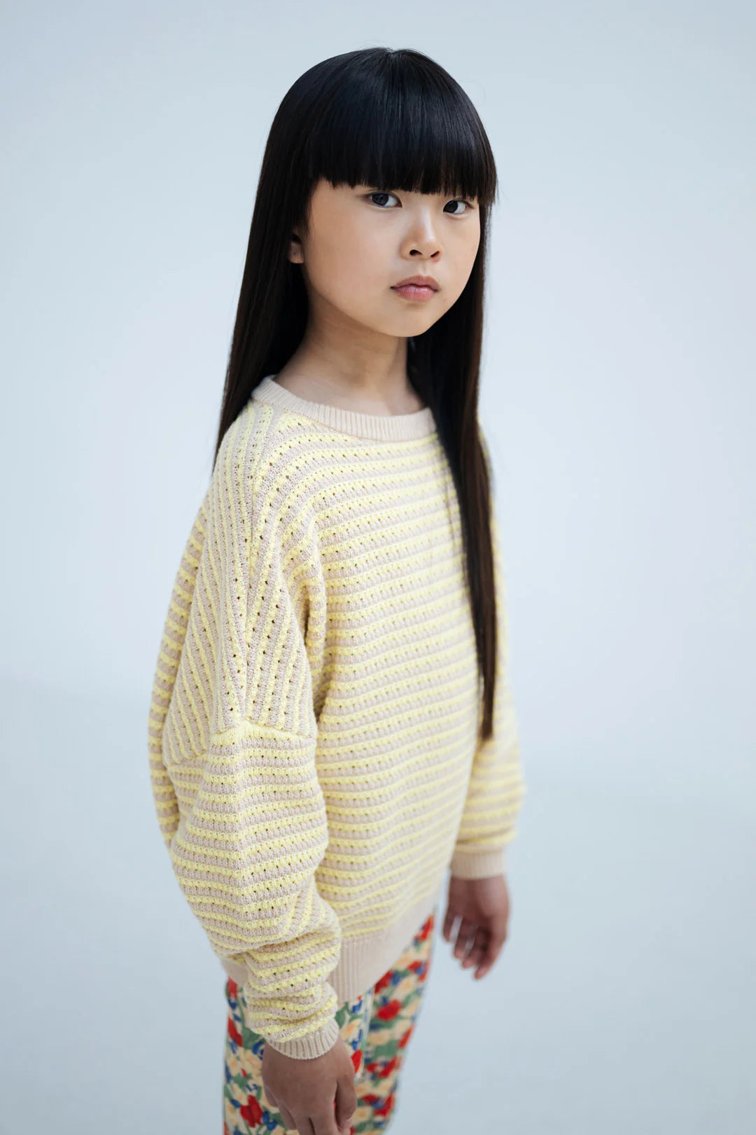 Dieser lässige Strickpullover in zartem Gelb mit Streifenmuster und strukturierter Strickoptik vereint lässigen Tragekomfort mit einem stylischen Statement. Gefertigt aus 100 % Baumwolle, besticht er durch seine coole Oversized-Passform mit Rundhalsausschnitt und Fledermausärmeln. Das markante Strukturmuster verleiht diesem modernen Layering-Teil einen besonderen Charakter.