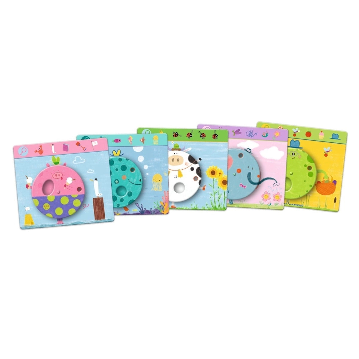 Ein allererstes Such- und Findespiel ... originell, unterhaltsam und animiert! Dank der 6 Tafeln mit Drehscheiben lädt jede Spielrunde zum Greifen und Entdecken ein. Wie beim echten Guck-guck-Spiel erwachen die Illustrationen unter deinen Fingern zum Leben!