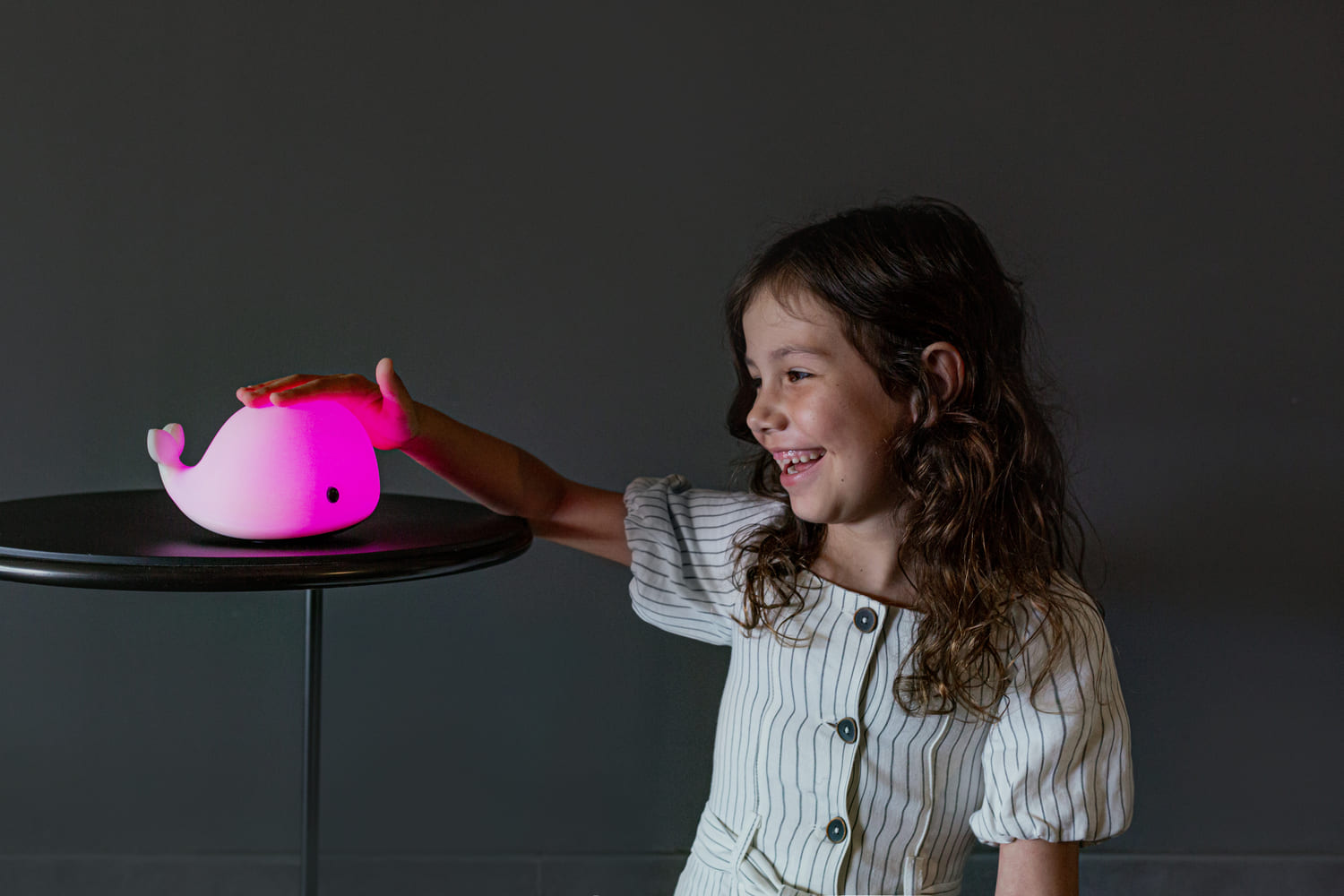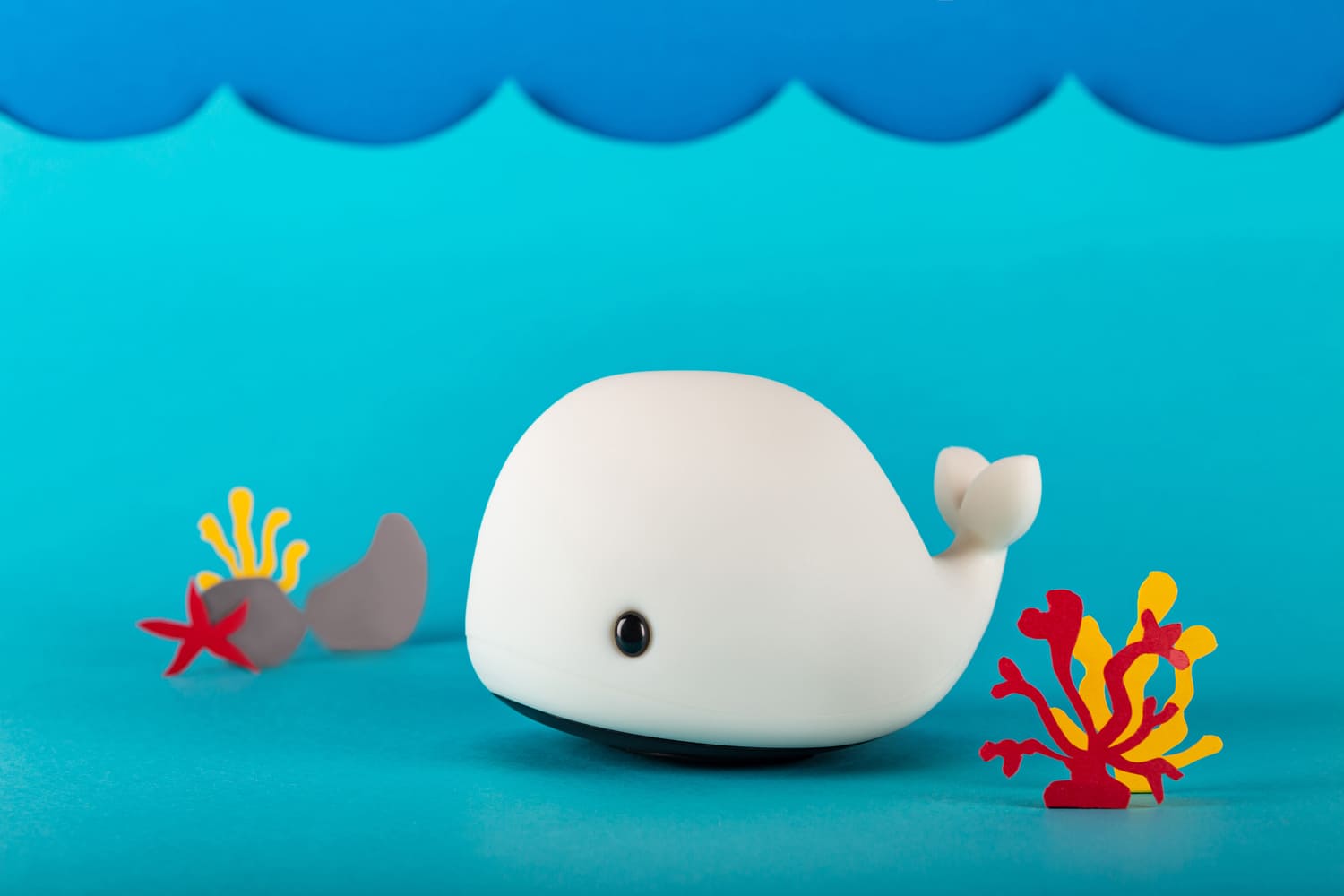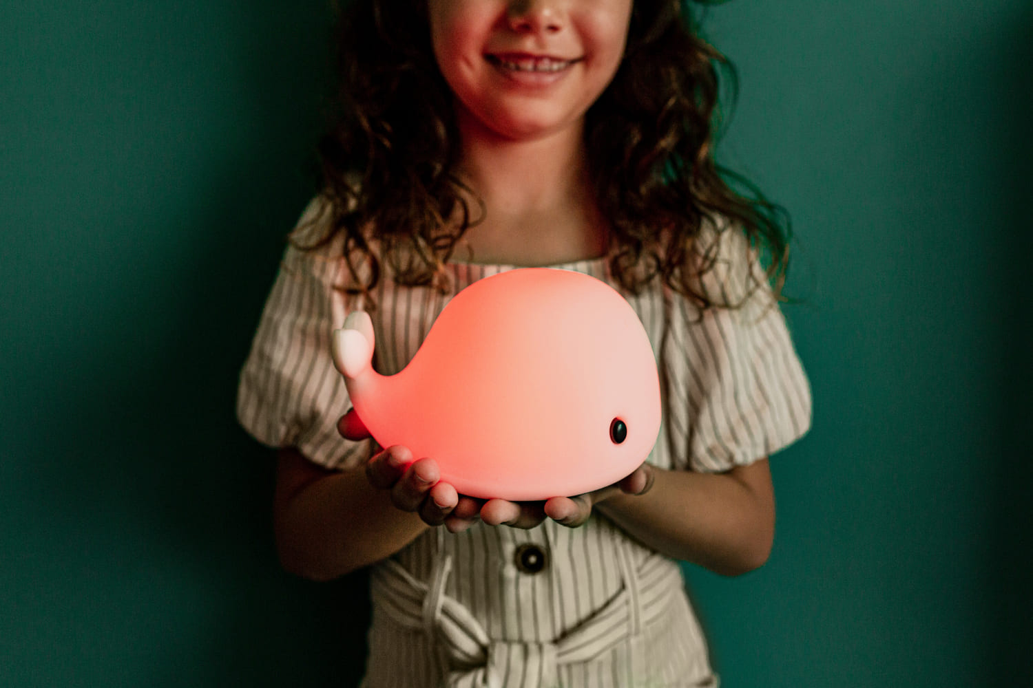 Wilda Whale Lampe von Little L bringt warmes, beruhigendes Licht ins Kinderzimmer und verwandelt jeden Raum in eine kleine Unterwasserwelt voller Geborgenheit. Mit ihrem sanften Wal-Design und der angenehm weichen Oberfläche lädt Wilda zum Träumen, Kuscheln und Entdecken ein. Die hochwertige LED-Technologie sorgt für ein flackerfreies, augenfreundliches Licht – perfekt als Einschlafhilfe, Nachtlicht oder stimmungsvolle Beleuchtung beim Vorlesen. Dank ihrer handlichen Größe lässt sich die Lampe leicht überallhin mitnehmen, ob ins Bett, auf Reisen oder zu nächtlichen Abenteuern im Haus.