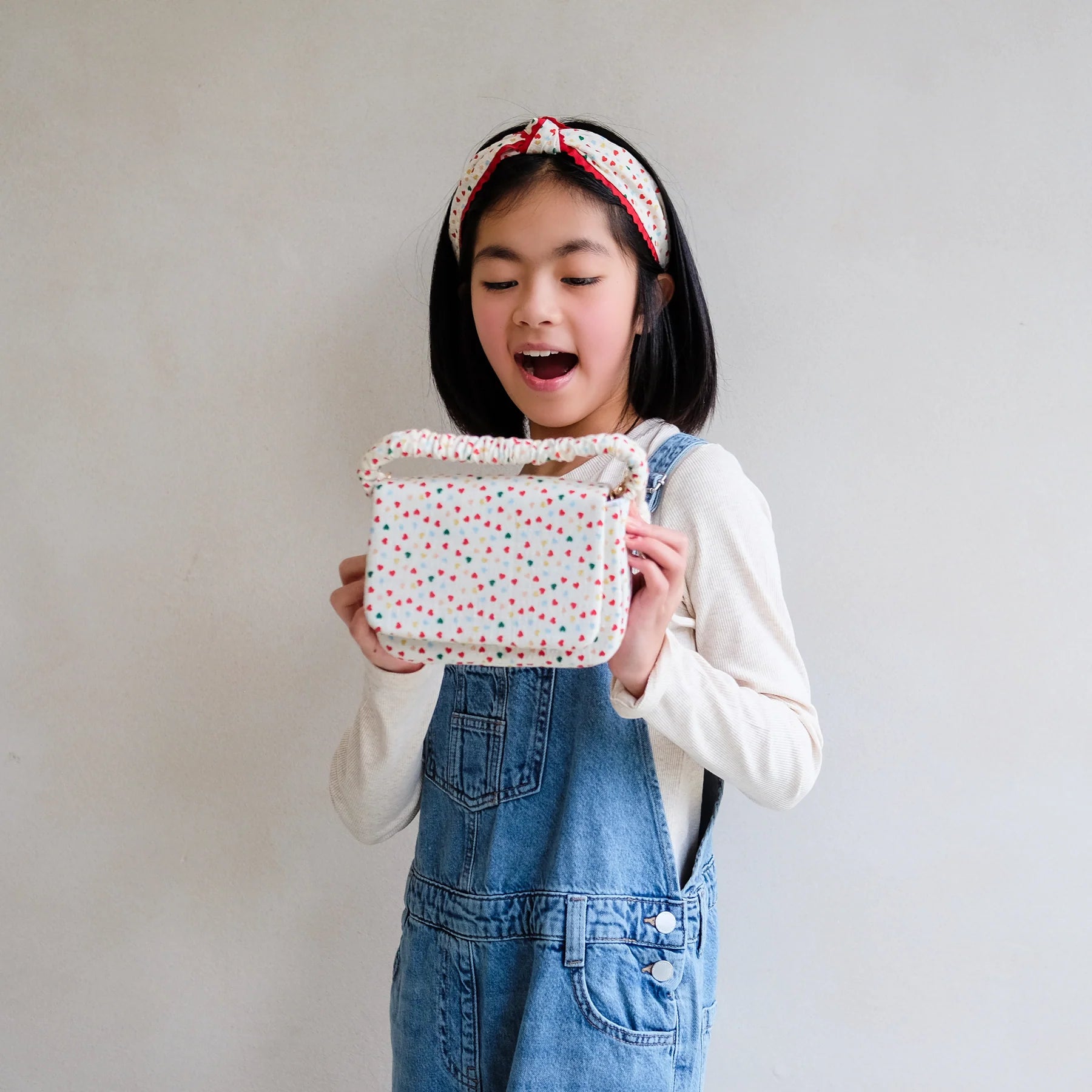Ist die neue Henkeltasche von Mimi & Lula mit Herzchenmuster nicht einfach zuckersüß? Dank des superweichen, gepolsterten Materials und des entzückenden, zarten Musters ist sie perfekt für alle kleinen Mädchen! Hübsch, praktisch und vielleicht sogar das ideale Geschenk!