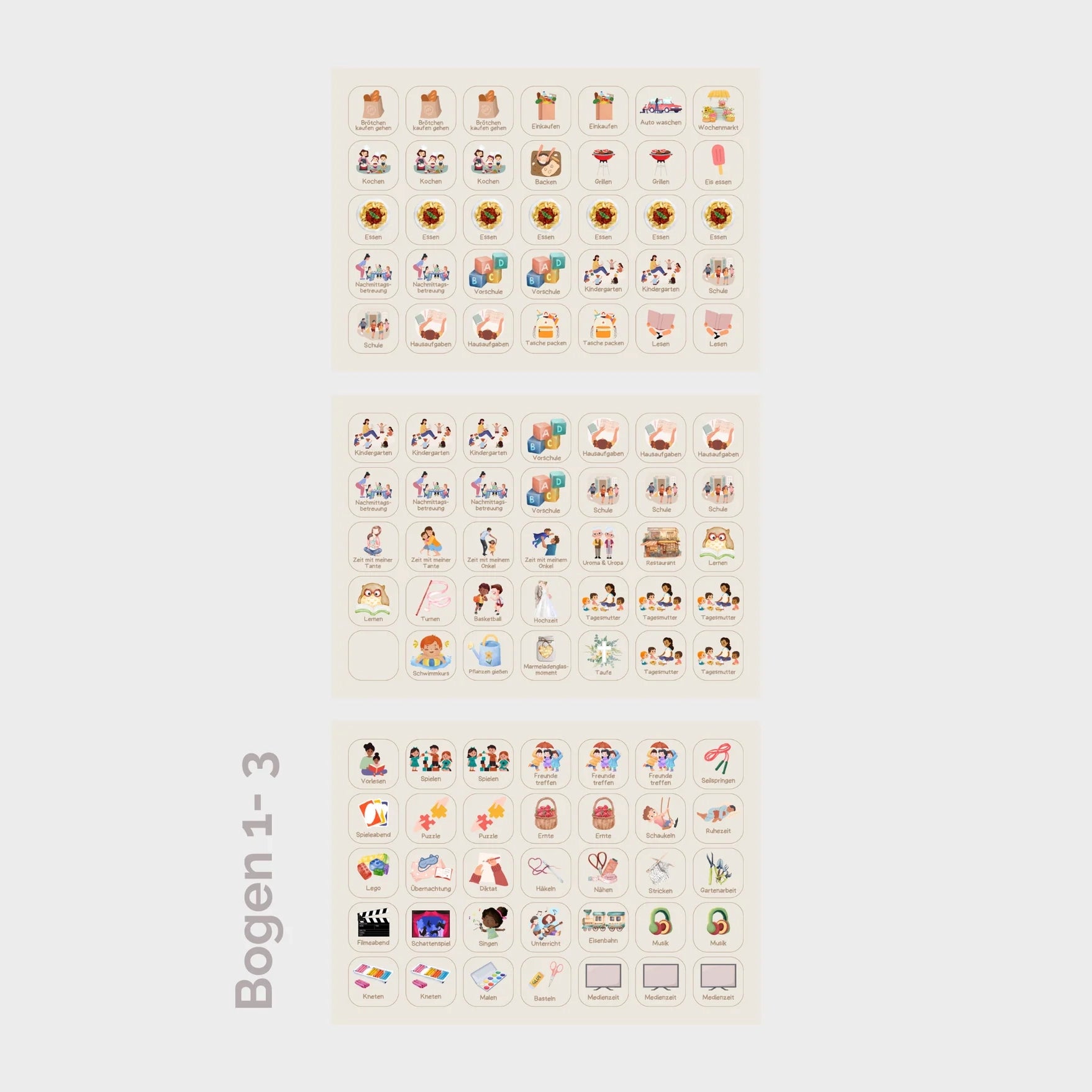 Set mit 315 gestanzte Kärtchen inkl. 35 individuell beschreibbare Kärtchen für den Wochenplaner. Im Wochenplaner-Set sind die Kärtchen schon dabei. Es handelt sich hierbei lediglich um 9 Bögen der Kärtchen zum nachkaufen.