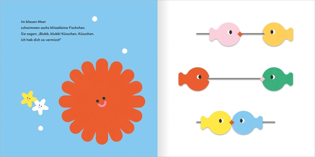 Küsschen sind die schönste Sprache der Welt. Ob zur Begrüßung, zum Trösten oder als liebevolles Gute-Nacht-Ritual – Küsschen sagen immer: „Ich hab dich lieb.“ In Marta Comíns farbenfrohem Pappbilderbuch zeigen Tiere auf spielerische Weise ihre Zuneigung. Verschiedenste Klappen und Schieber laden Kinder zum Entdecken und Mitspielen ein. Ein Buch über das Liebhaben – ideal zum gemeinsamen Anschauen und Kuscheln.