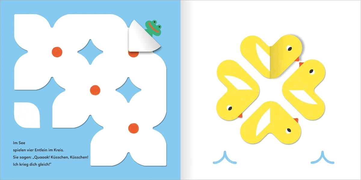 - Hochwertige Klapp- und Schiebeelemente mit plakativen Tierillustrationen laden zum Spielen, Entdecken und Küsschen geben ein.