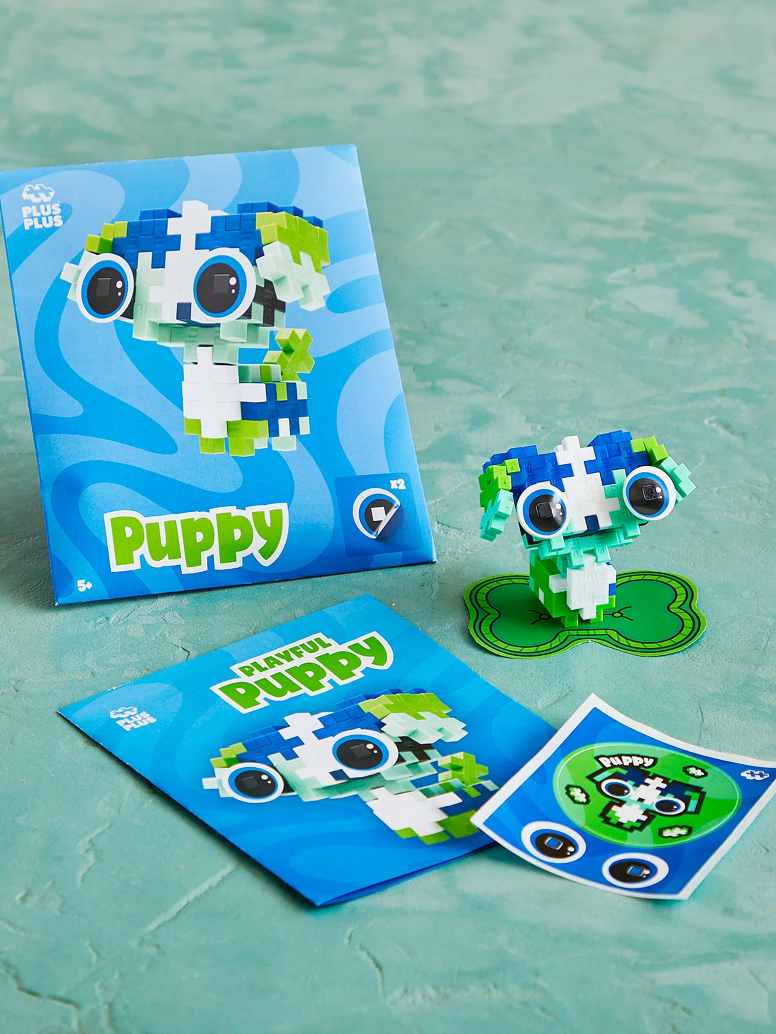 Lerne den verspielten Welpen kennen – einen fröhlichen kleinen Freund, der immer für Spaß zu haben ist! Baue deinen eigenen Welpen mit Plus-Plus und erwecke ihn mit den ausdrucksstarken Aufkleberaugen zum Leben. Setze ihn auf seine knochenförmige Matte, wo er auf Leckerlis warten, Tricks üben oder fantasievolle Abenteuer erleben kann. Mit seinen leuchtenden Farben und den großen, freundlichen Augen ist dieser verspielte Welpe einfach bezaubernd.
