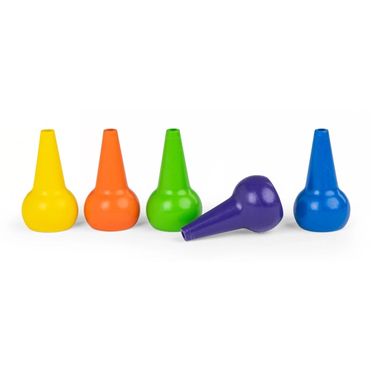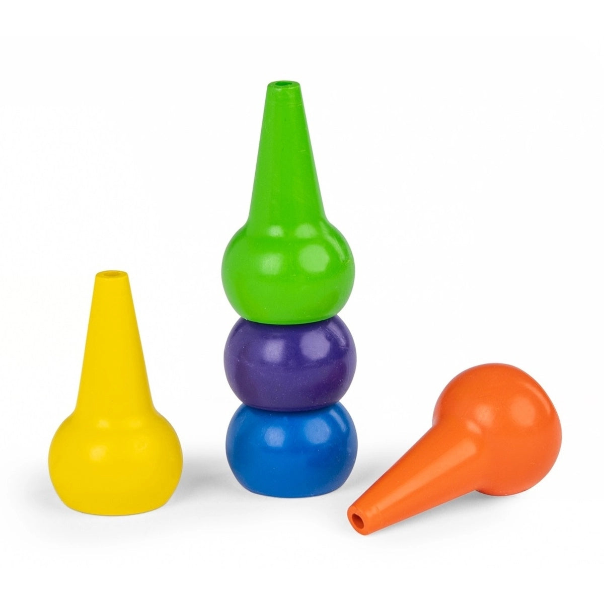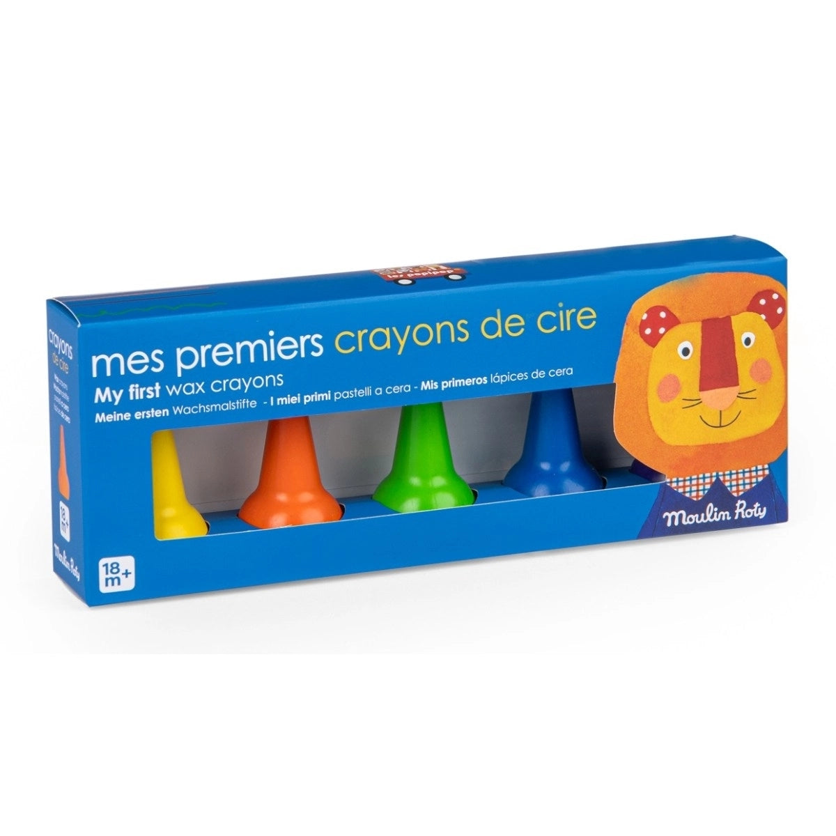 Ein Set mit fünf dicken Wachsmalstiften in verschiedenen Farben. Ihre runde Form passt perfekt in kleine Hände, und die Bienenwachsbasis sorgt dafür, dass sie keine Flecken hinterlassen und leicht abzuwaschen sind.