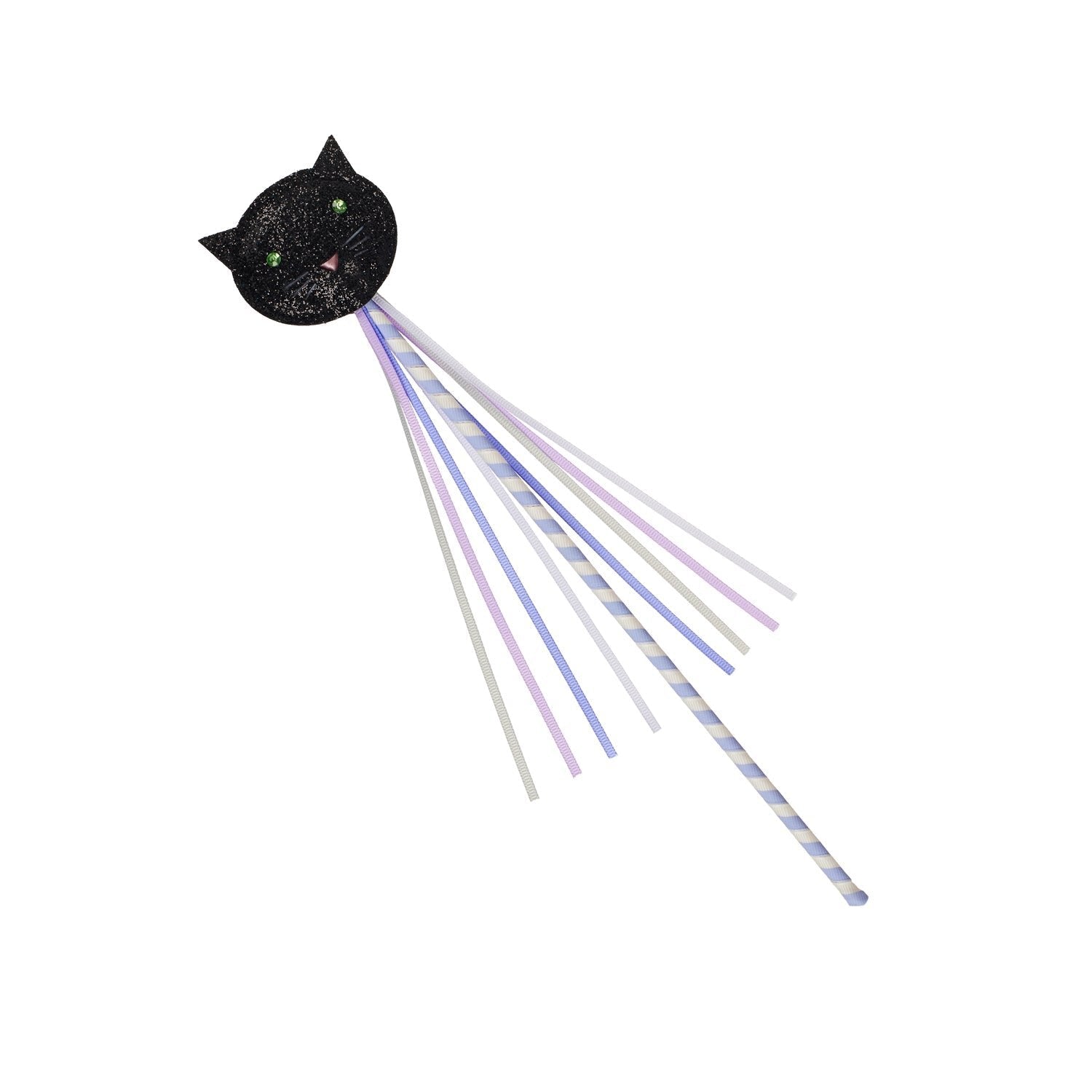 Schwingen deinen Zauberstab und wirke an Halloween den einen oder anderen Zauber! Der schwarze Katzenstab besteht aus schimmerndem schwarzem Glitzer, ist gestreift und mit zarten lila Bändern verziert. Der perfekte Zauberstab für Fantasieabenteuer oder eine lustige Ergänzung für die Verkleidungskiste!