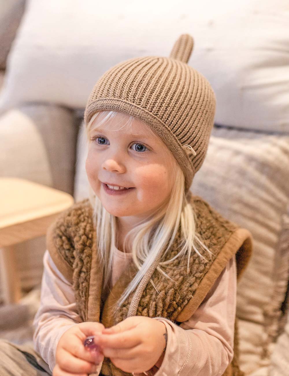 Die Mütze PINNI mit dem zuckersüßen Design hat eine perfekte Passform. Sie sitzt immer sicher, verrutscht nicht und schützt die Öhrchen zuverlässig.