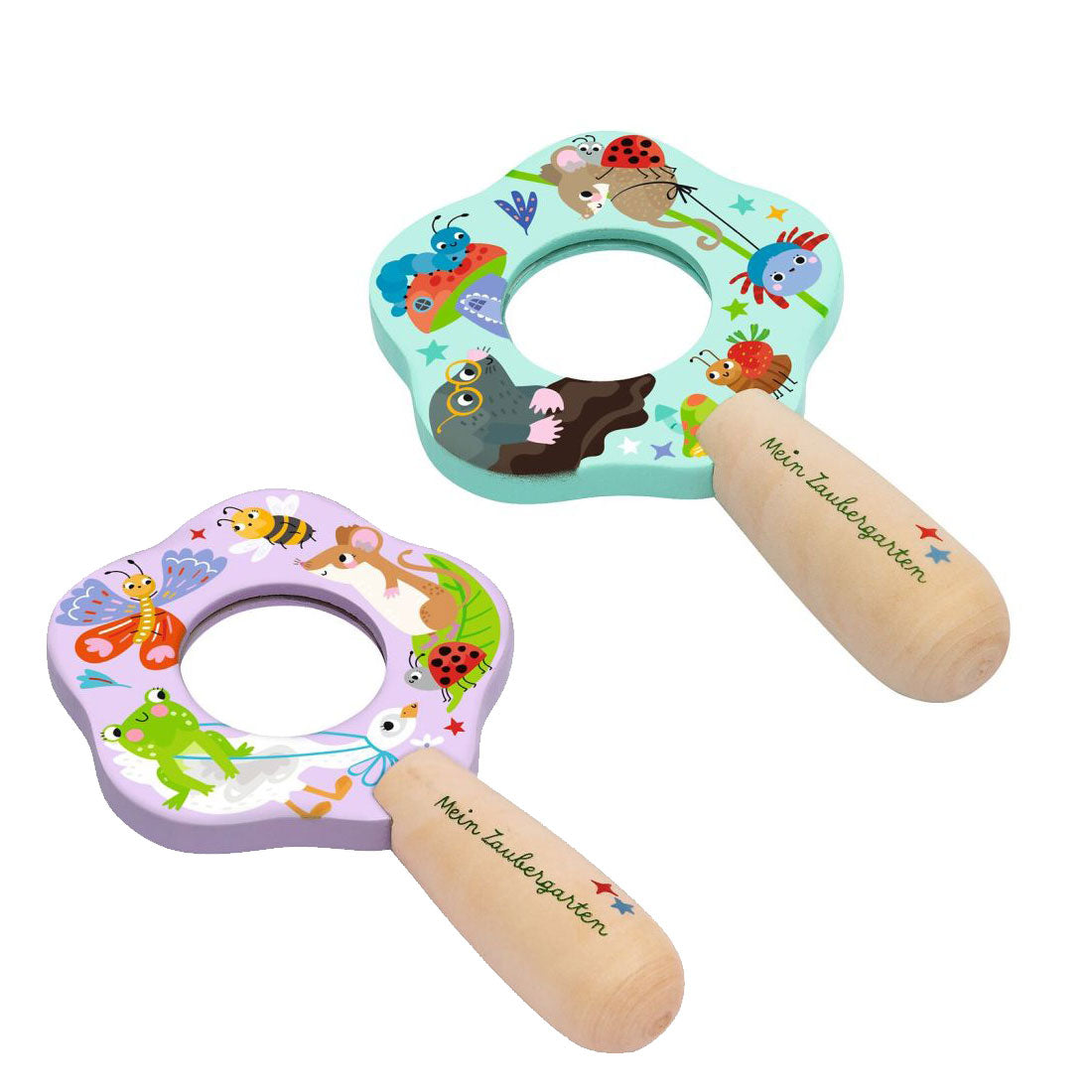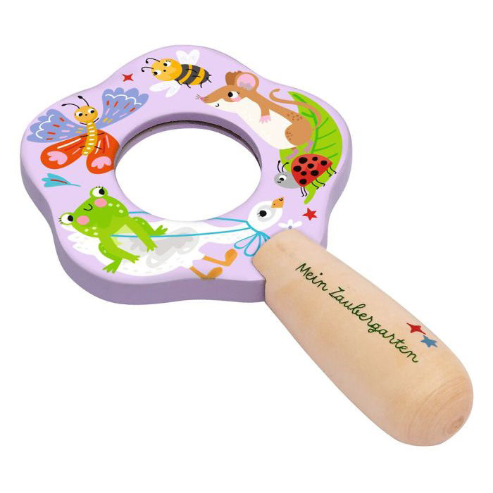 Die kleinen Lupen aus der Reihe „Mein Zaubergarten" laden schon die Jüngsten dazu ein, ihre Umgebung ganz genau zu betrachten. Ob Käfer, Blätter oder Steinchen – mit der 3-fachen Vergrößerung wird jedes Detail sichtbar. Die robuste Lupe aus Holz liegt gut in kleinen Händen und begeistert mit zwei fröhlichen Designs.