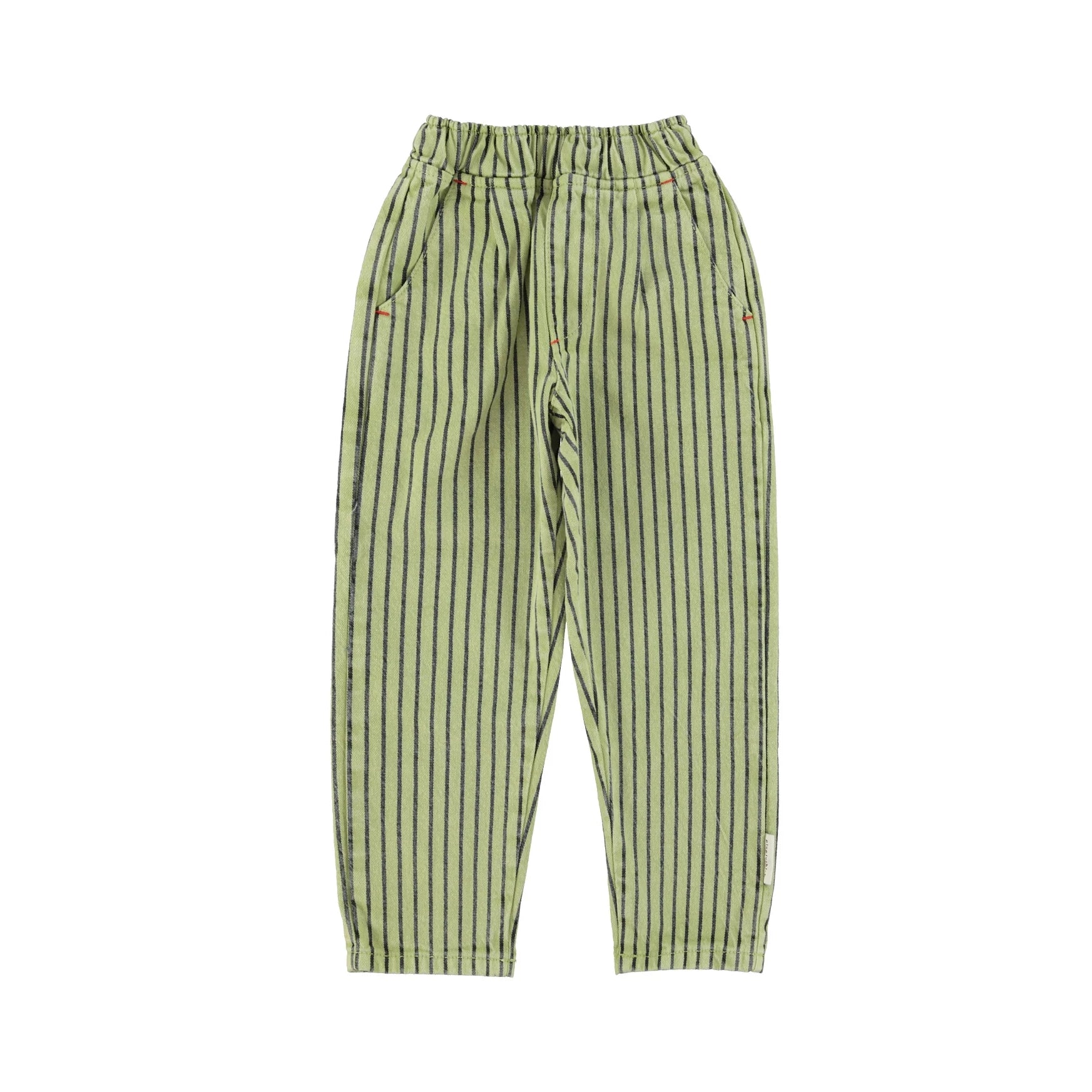 Hose mit elastischem Bund und seitlichen Taschen. Mit roten Ziernähten.