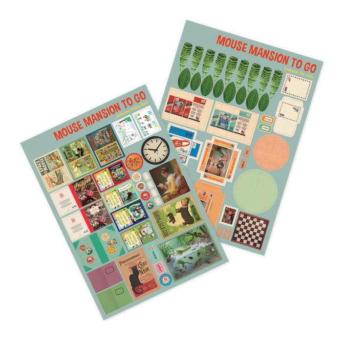 - Stickerbogen mit Postern, Buchcovern und weiteren Dekorationen