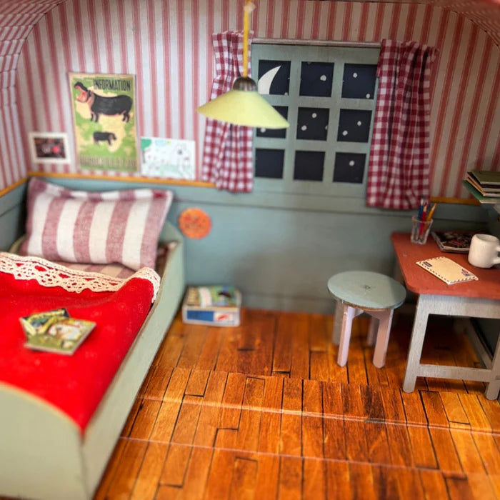 Dein Kind liebt das Mäusehaus und ist gerne kreativ? Dann ist dieses Köfferchen genau das Richtige! Es enthält alles, was man braucht, um ein gemütliches kleines Schlafzimmer für Sam oder Julia zu bauen. Die Möbel lassen sich ganz einfach zusammenbauen – auch für Anfänger. Dekoriere das Zimmer mit liebevollen Details und schenke deiner Maus einen eigenen Schlafplatz. So haben Sam oder Julia immer einen warmen Ort zum Schlafen – selbst im Urlaub oder bei einem Übernachtungsbesuch!