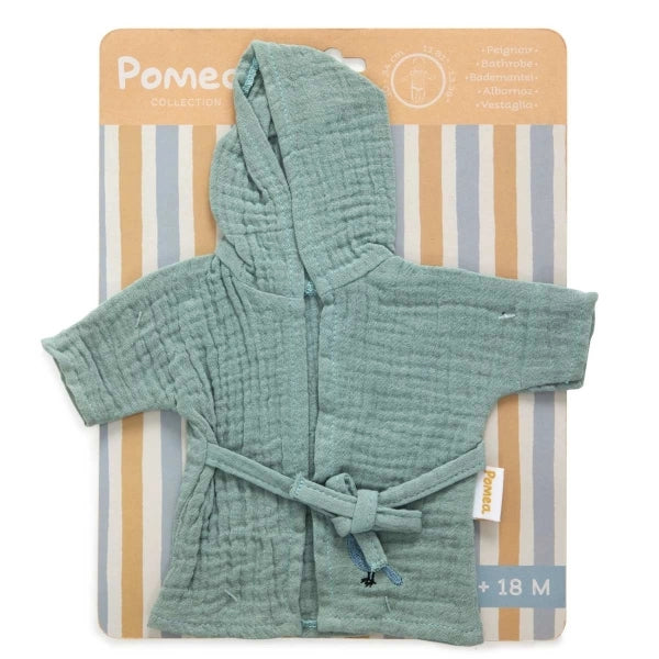 Ein bestickter Bademantel aus Doppelgaze, ideal zum Abtrocknen der Puppe nach dem Baden.
