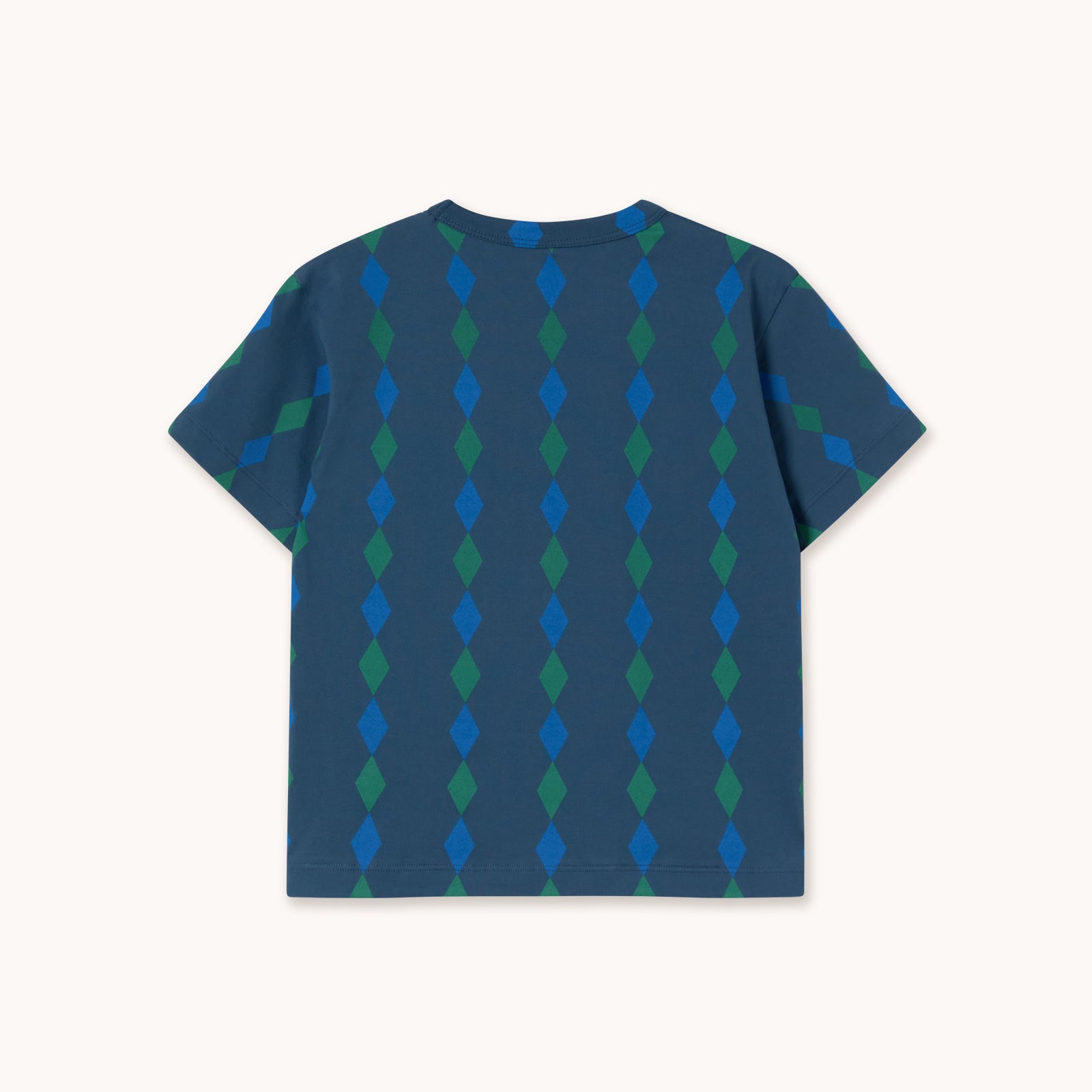 Dieses T-Shirt mit Diamantenmuster aus 100 % Bio-Baumwolle vereint Komfort, Stil und Nachhaltigkeit. Das auffällige Design verleiht jedem Outfit eine verspielte Note. Kurze Ärmel und ein Rundhalsausschnitt sorgen für eine bequeme Passform, während der weiche, atmungsaktive Stoff sanft zur Haut ist. Ob für entspannte Ausflüge oder gemütliche Tage zu Hause – dieses T-Shirt bietet Ihrem Kind Qualität und Komfort.