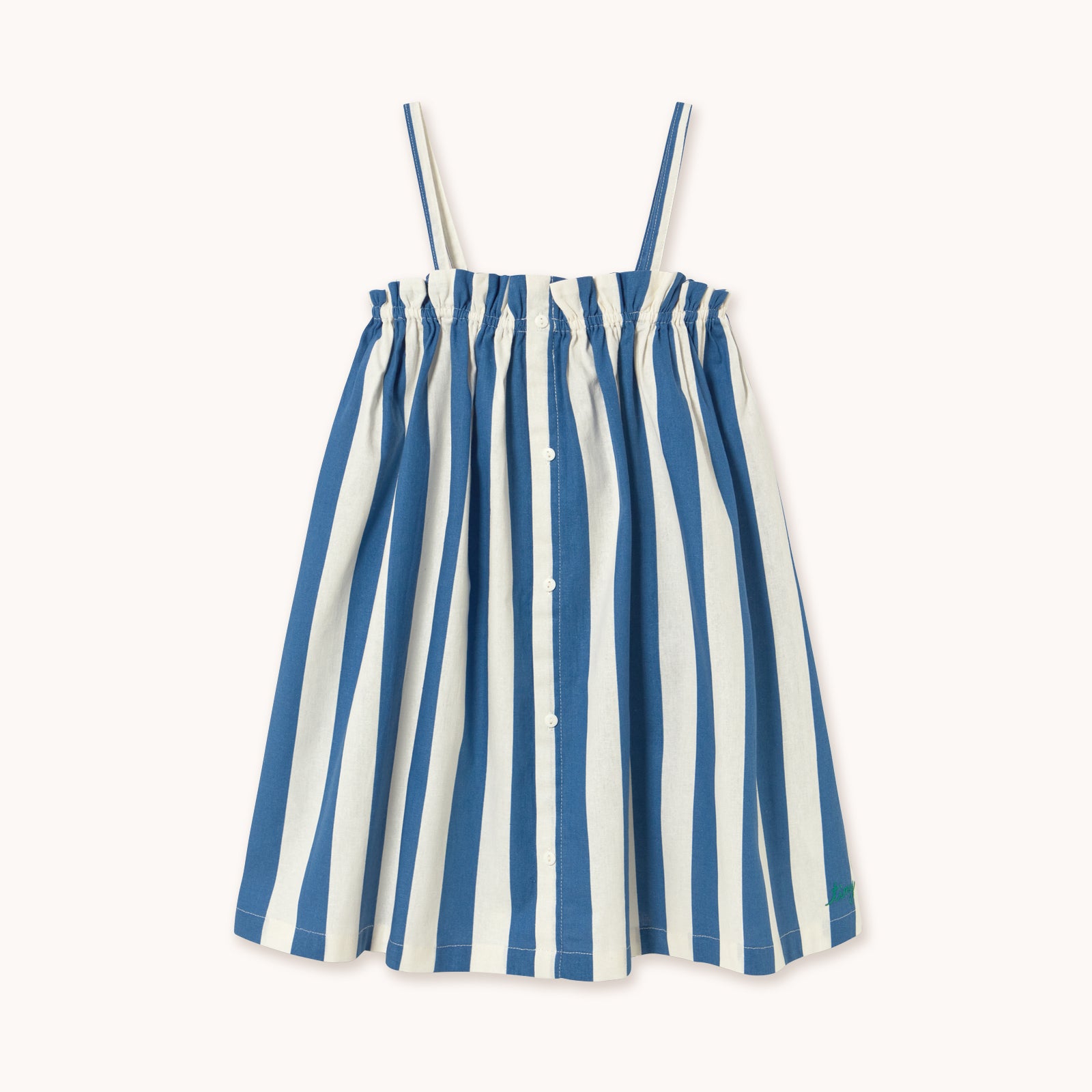 Dieses gestreifte Kleid vereint Stil und Komfort perfekt. Gefertigt aus einem weichen, atmungsaktiven Baumwollmix, bietet es dank seiner lockeren, geraden Passform ganztägigen Tragekomfort. Die Träger und Knöpfe vorne erleichtern das An- und Ausziehen und verleihen dem Kleid eine praktische und zugleich stilvolle Note. Ideal für den Alltag oder legere Anlässe – dieses Kleid ist eine frische und bequeme Wahl für wärmere Tage.