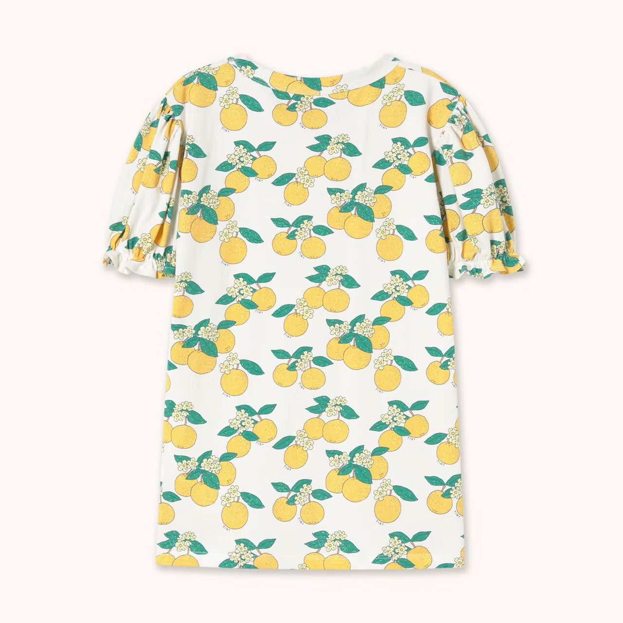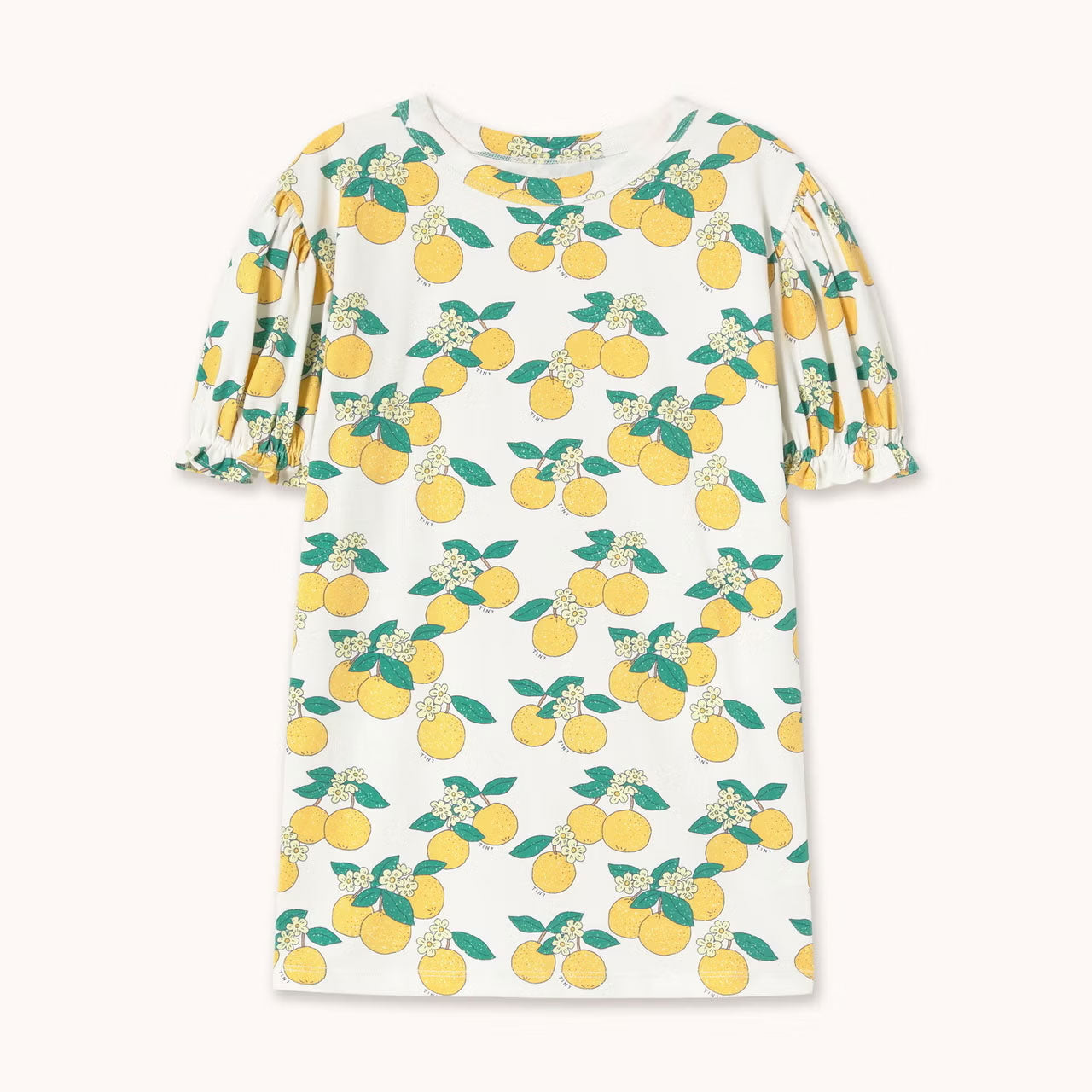 Dieses Kleid vereint verspielt und stilvoll zugleich: Puffärmel, ein runder Ausschnitt und ein auffälliger Orangenprint ziehen alle Blicke auf sich. Gefertigt aus einem weichen Baumwollmischgewebe, ist es angenehm weich, atmungsaktiv und sanft zur Haut Ihres Kindes. Ob für besondere Anlässe oder einfach für einen Tag voller Abenteuer – dieses Kleid bietet die perfekte Balance aus Komfort und Stil.